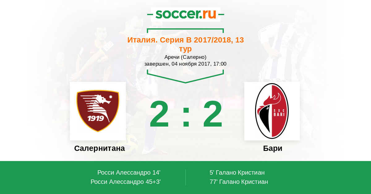 77' (2:2) Галано Кристиан (11) (Импрота Риккардо (16))