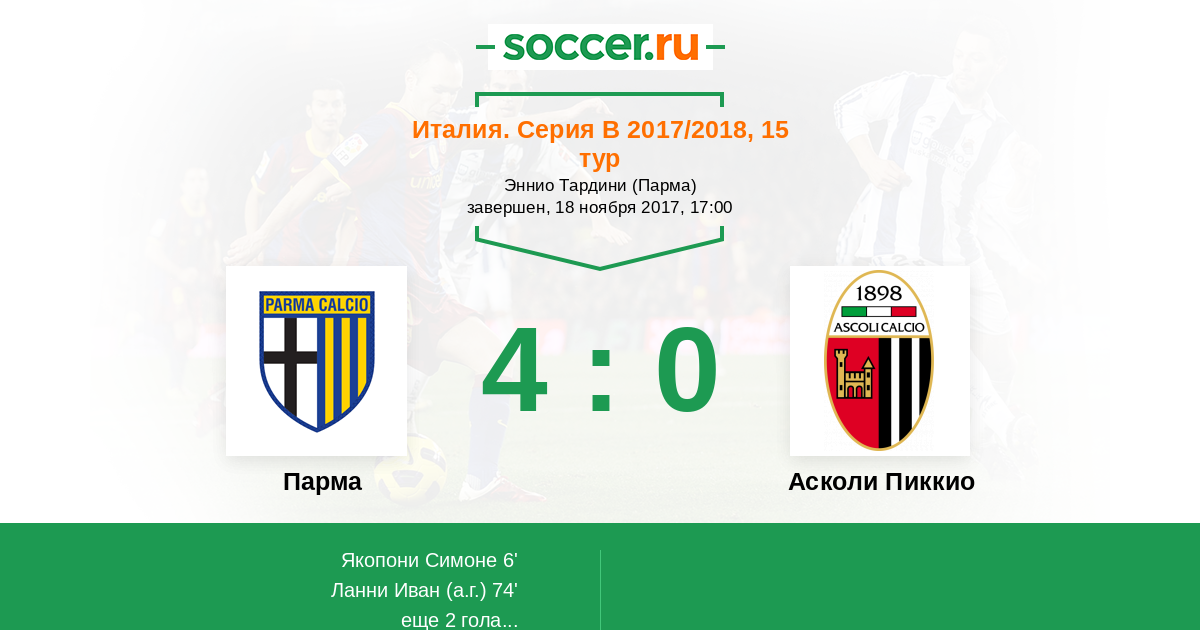 Протокол матча Парма против Асколи Пиккио