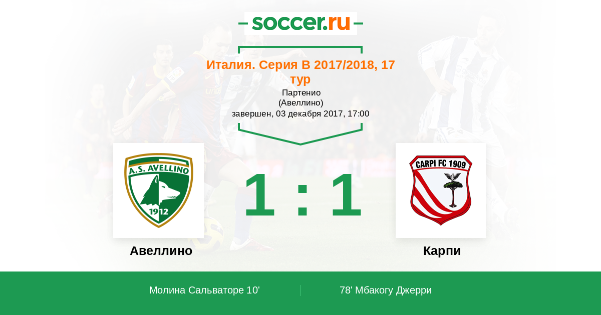 Протокол матча Авеллино против Карпи