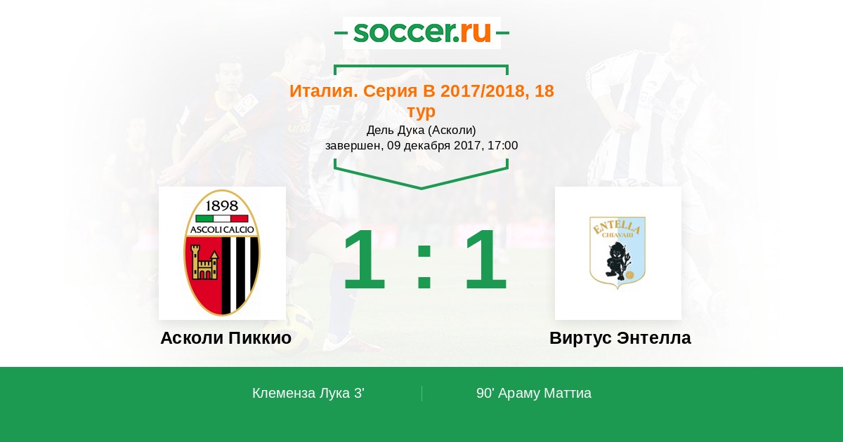 Протокол матча Асколи Пиккио против Виртус Энтелла
