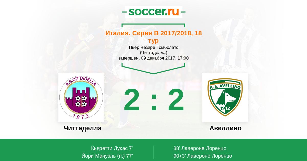 Протокол матча Читтаделла против Авеллино