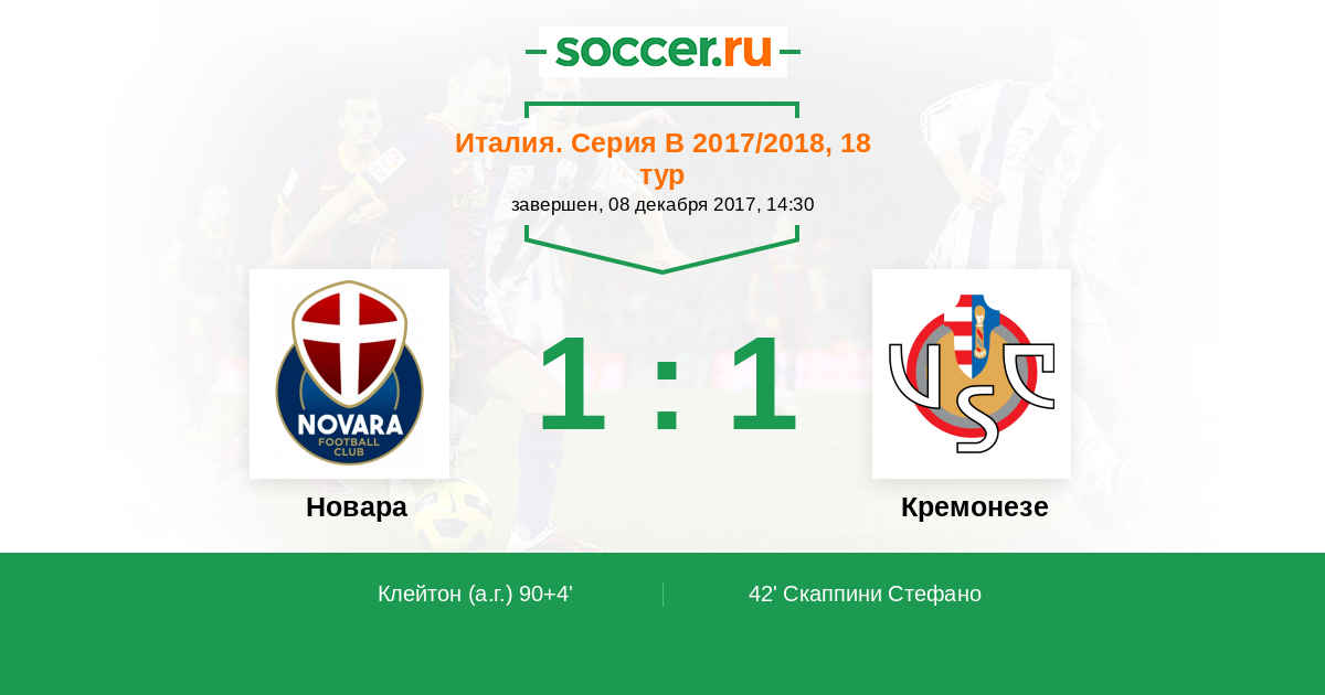 42' (0:1) Скаппини Стефано (19) (Кроче Даниэле (5))