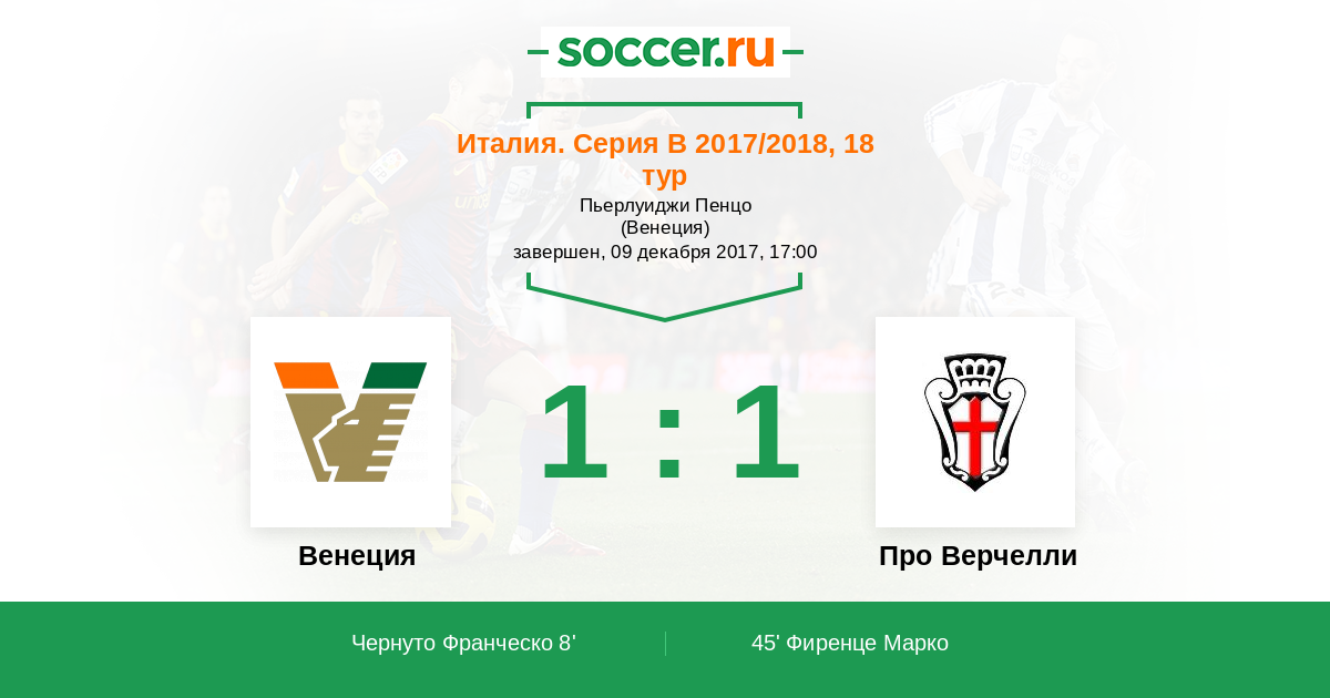 Протокол матча Венеция против Про Верчелли