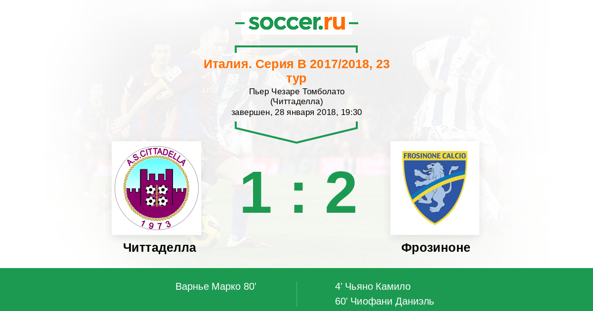 4' (0:1) Чьяно Камило (28) (Дионизи Федерико (18))