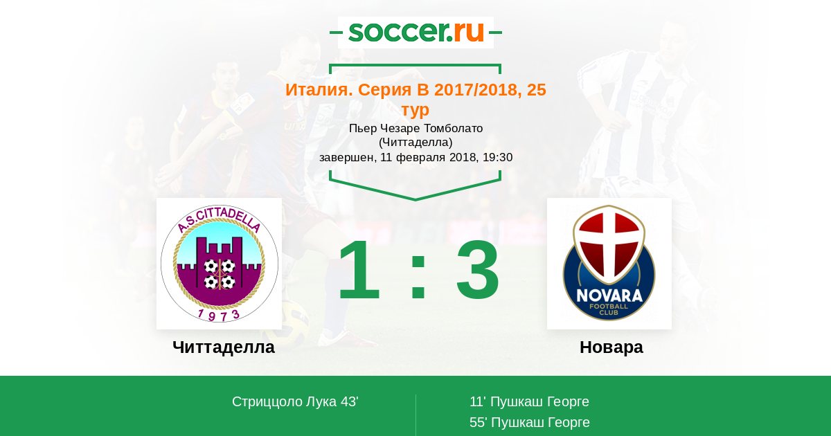 Протокол матча Читтаделла против Новара