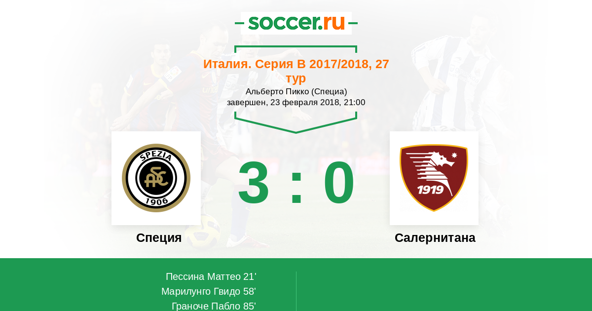 Протокол матча Специя против Салернитана