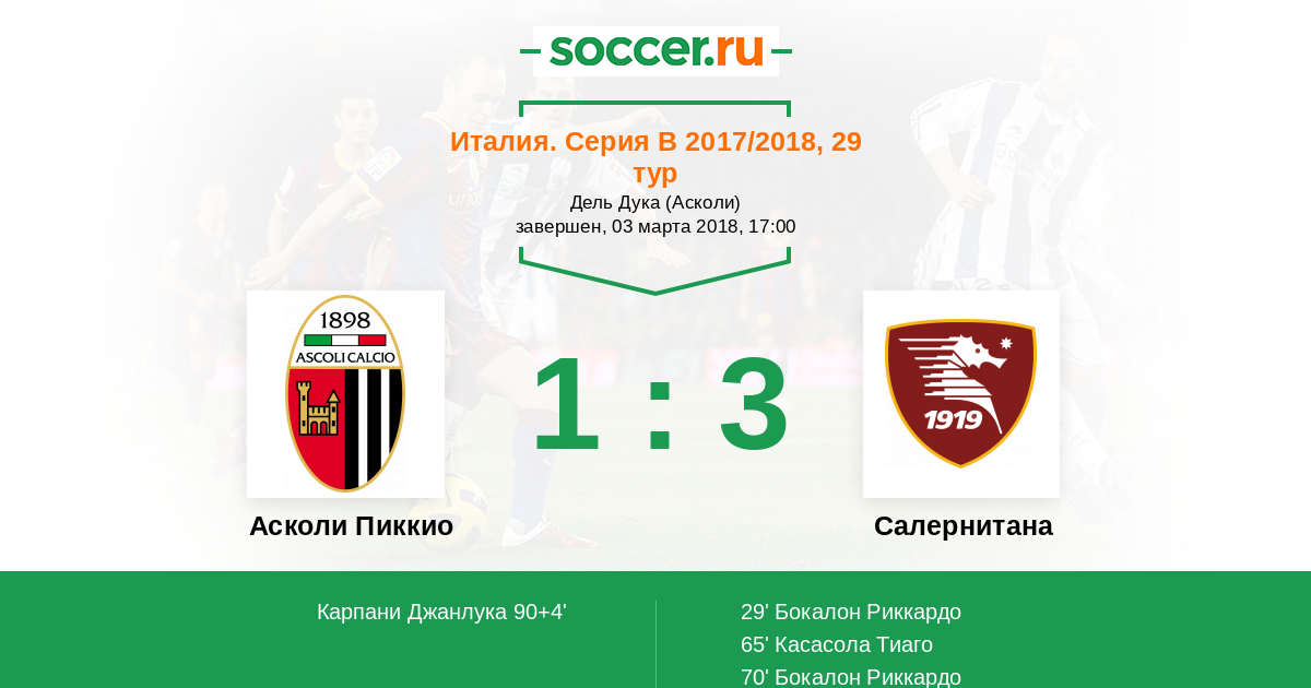 Протокол матча Асколи Пиккио против Салернитана