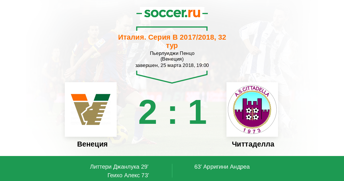 Протокол матча Венеция против Читтаделла