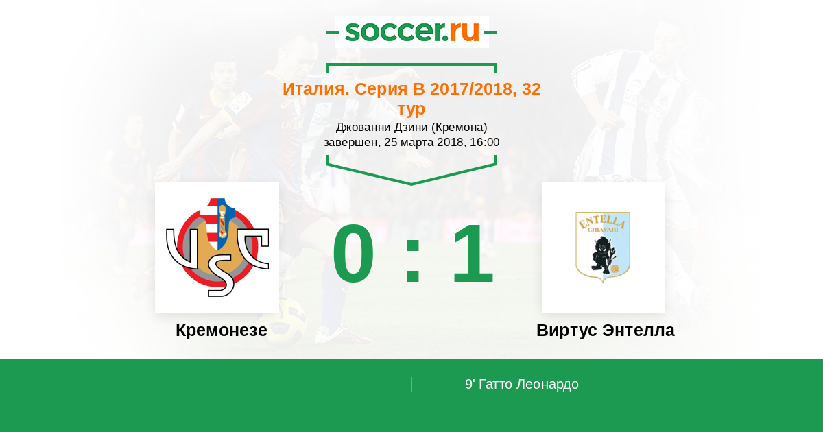 Протокол матча Кремонезе против Виртус Энтелла