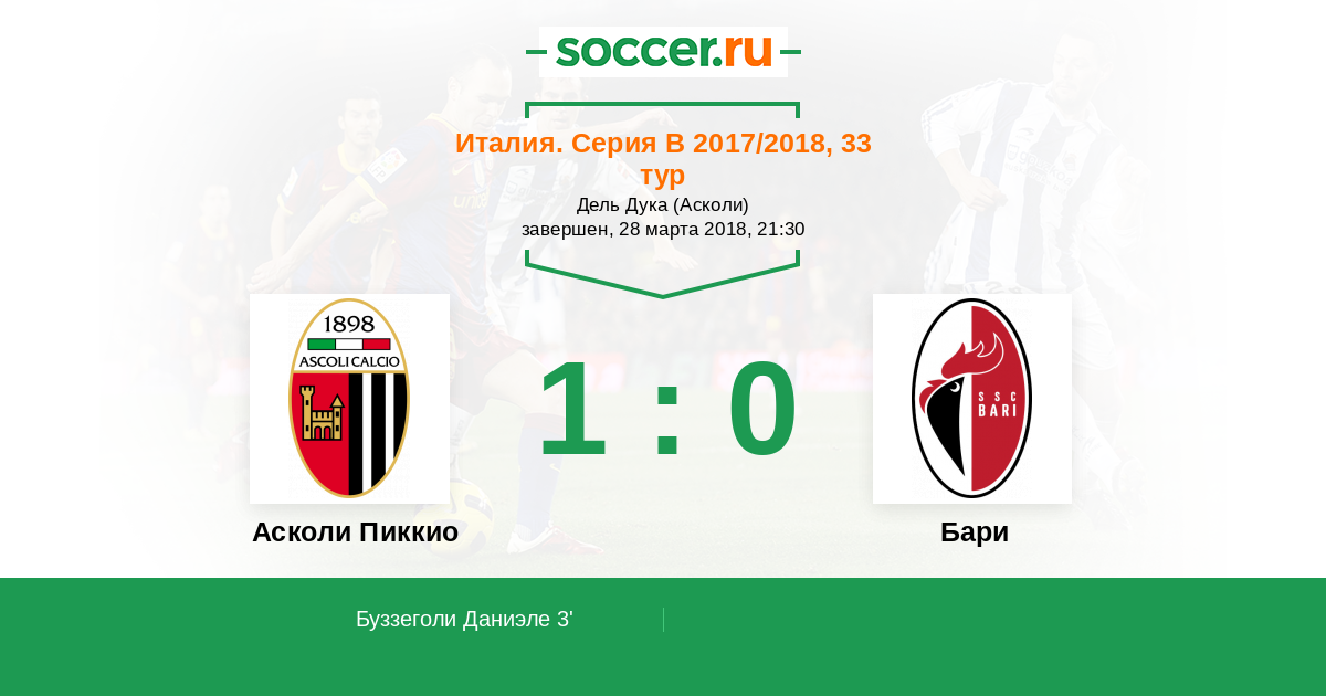 Протокол матча Асколи Пиккио против Бари
