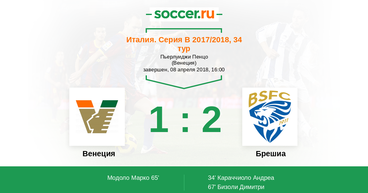 Протокол матча Венеция против Брешиа