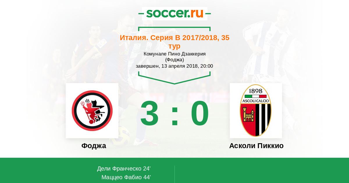 Протокол матча Фоджа против Асколи Пиккио