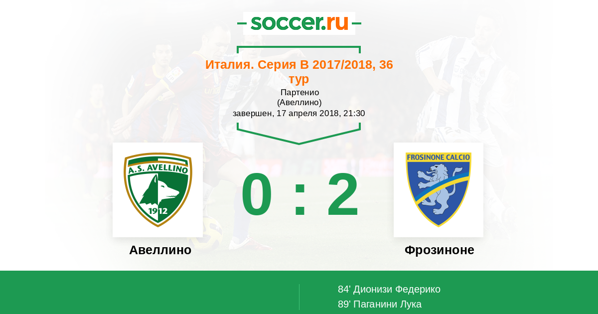 Протокол матча Авеллино против Фрозиноне
