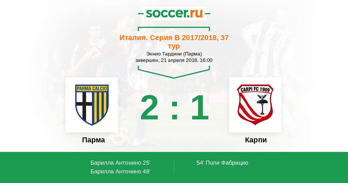 Протокол матча Парма против Карпи