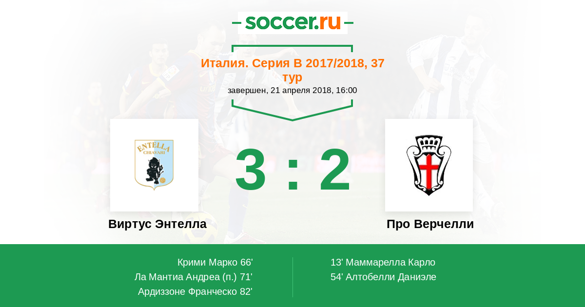 Протокол матча Виртус Энтелла против Про Верчелли
