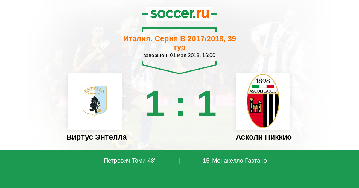 Протокол матча Виртус Энтелла против Асколи Пиккио