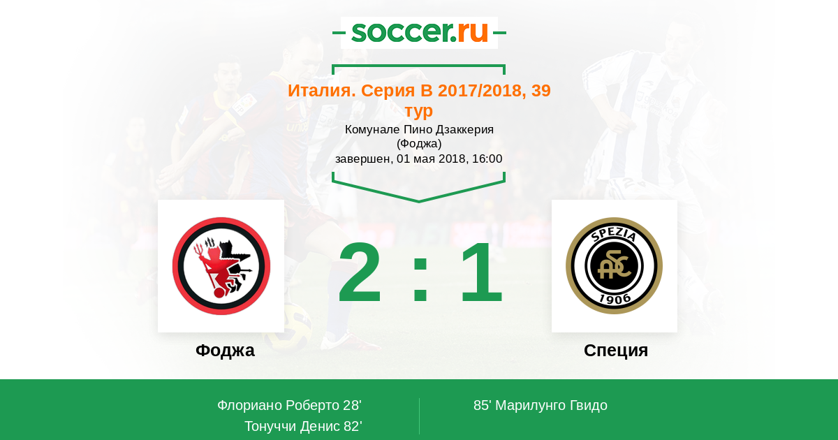 Протокол матча Фоджа против Специя