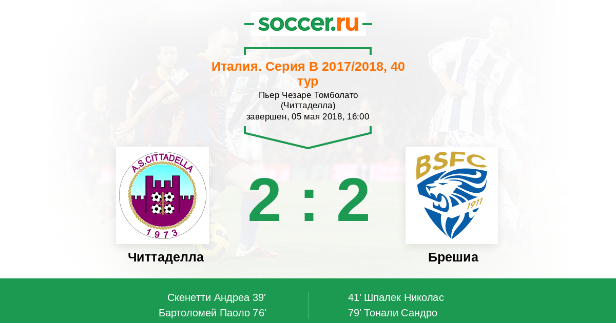 Протокол матча Читтаделла против Брешиа
