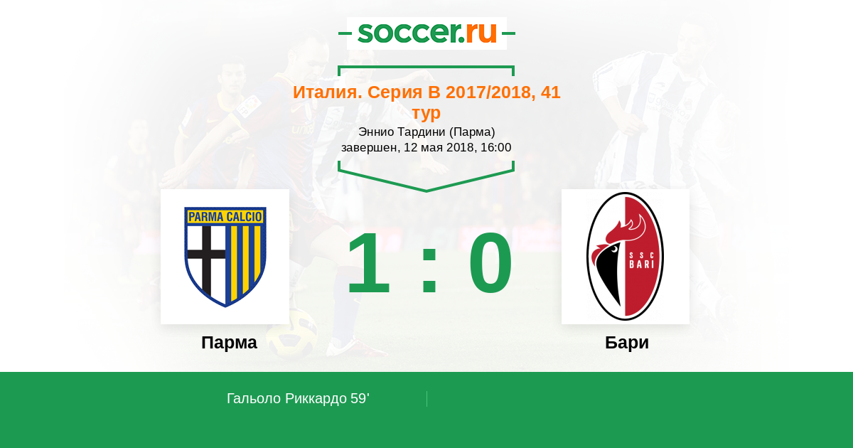 59' (1:0) Гальоло Риккардо (28) (Дези Джакопо (33))