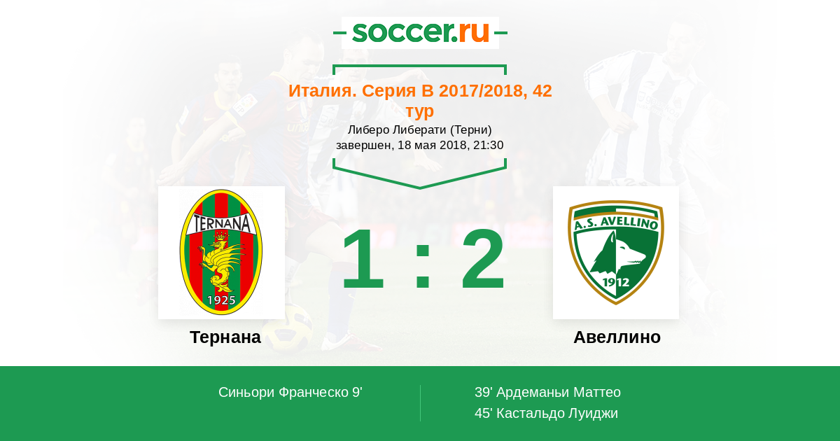Протокол матча Тернана против Авеллино