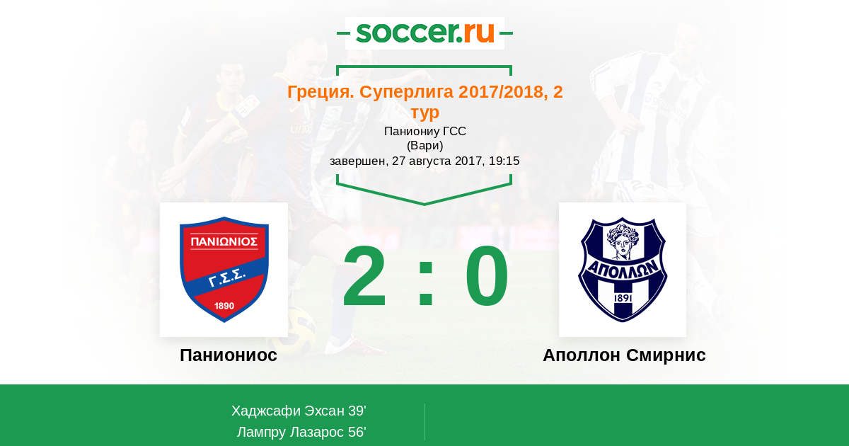 Протокол матча Паниониос против Аполлон Смирнис