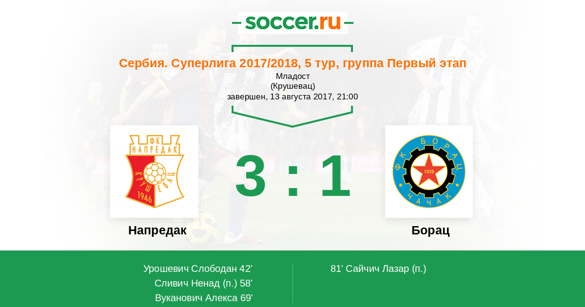 81' (3:1) Сайчич Лазар (7)