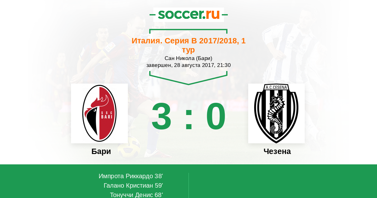 Протокол матча Бари против Чезена