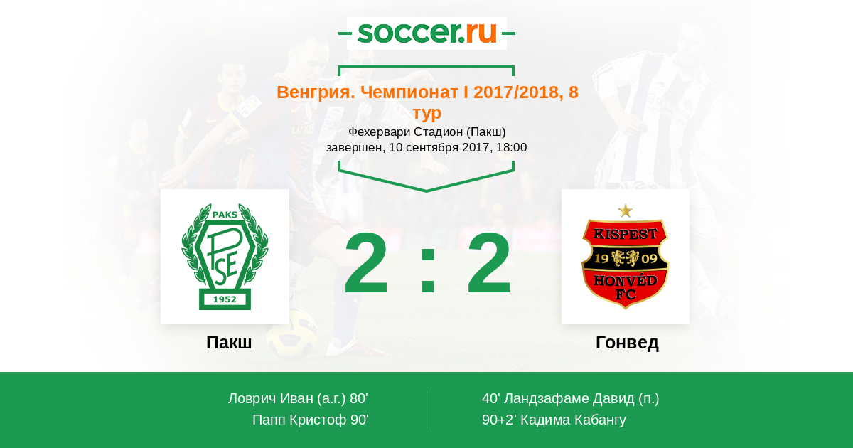 Протокол матча Пакш против Гонвед