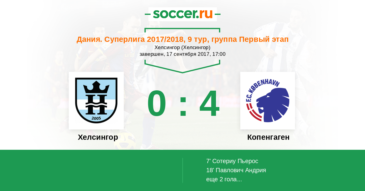 Протокол матча Хелсингор против Копенгаген