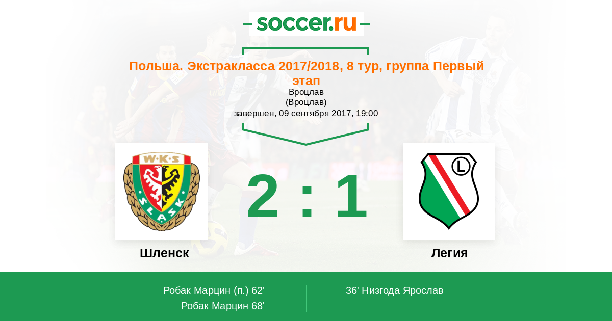 Протокол матча Шленск против Легия