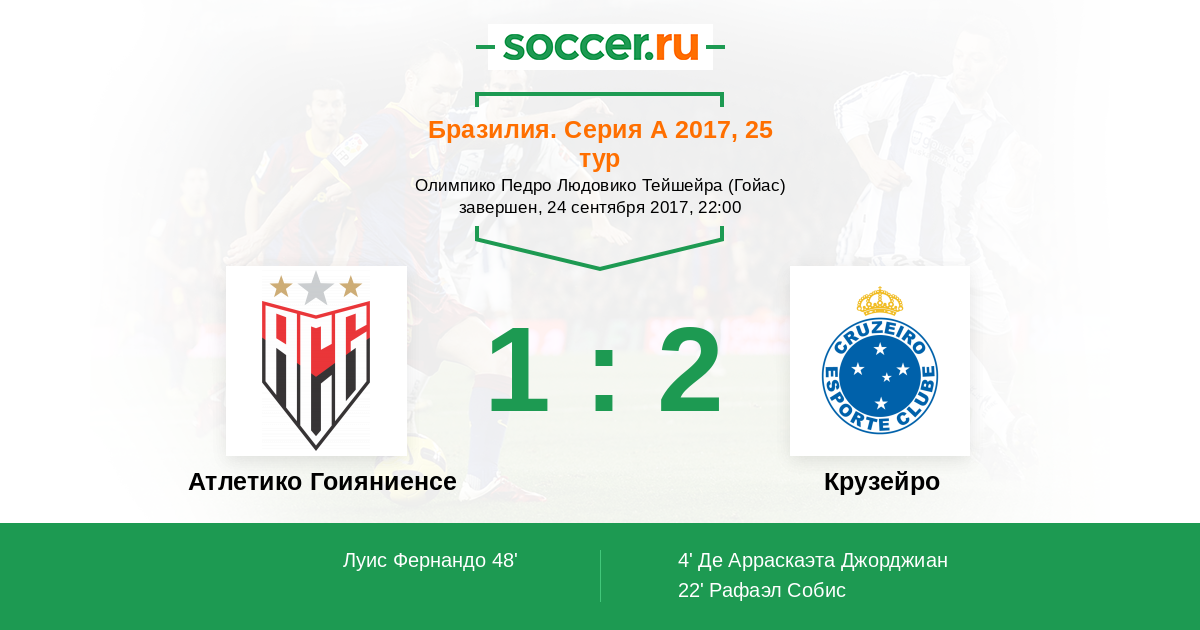 48' (1:2) Луис Фернандо (10) (Де Моура Ксавье Хорхе (18))