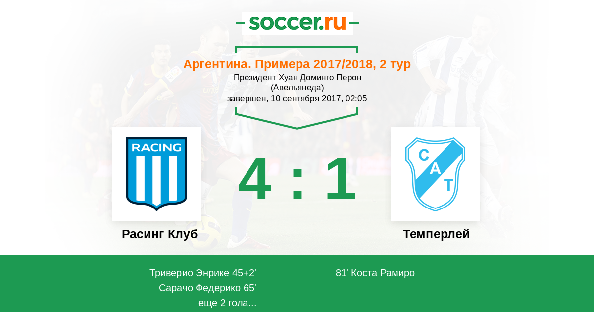 65' (2:0) Сарачо Федерико (28) (Триверио Энрике (32))