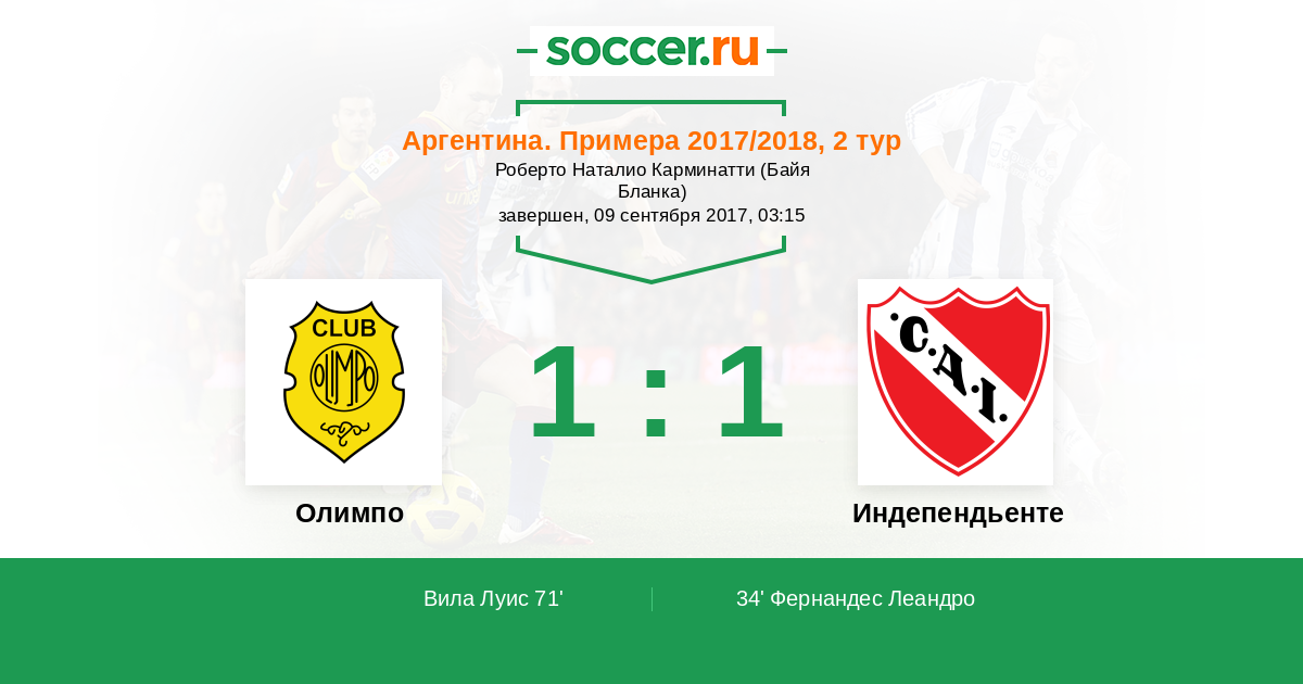 Протокол матча Олимпо против Индепендьенте