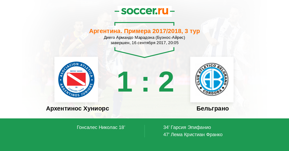 Протокол матча Архентинос Хуниорс против Бельграно