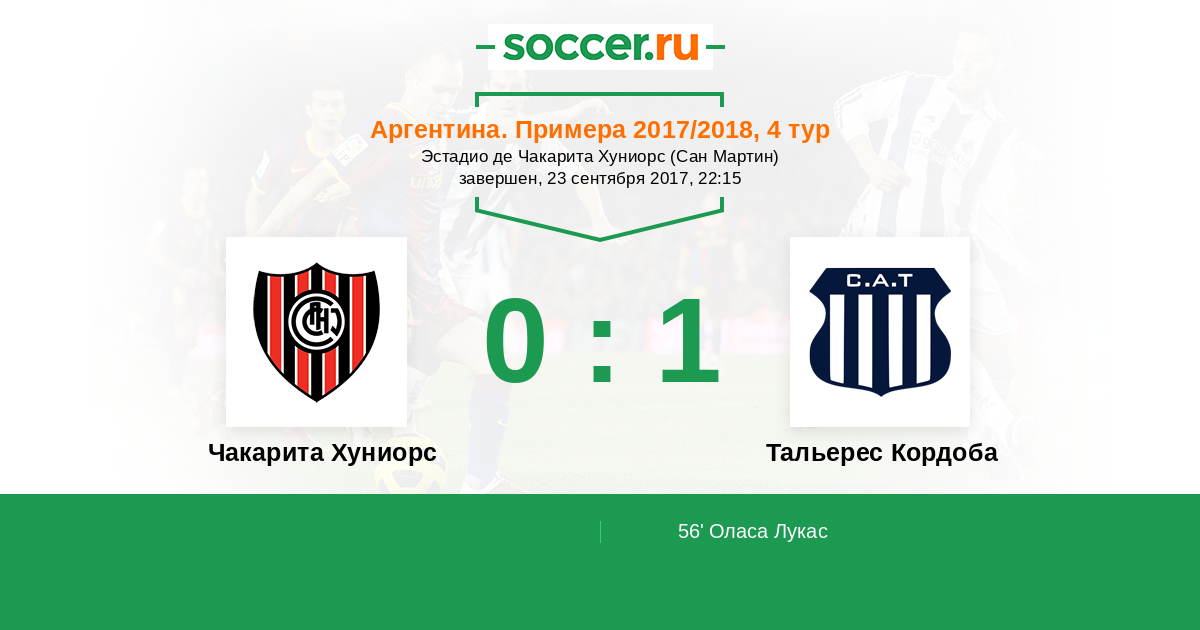 Протокол матча Чакарита Хуниорс против Тальерес Кордоба