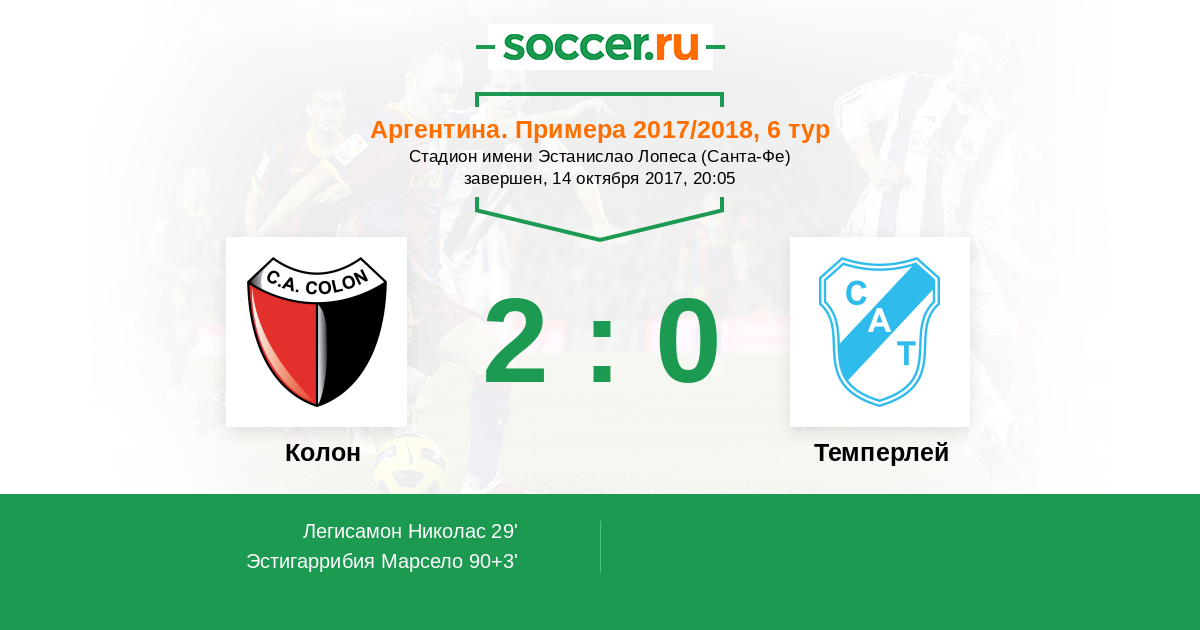 Протокол матча Колон против Темперлей