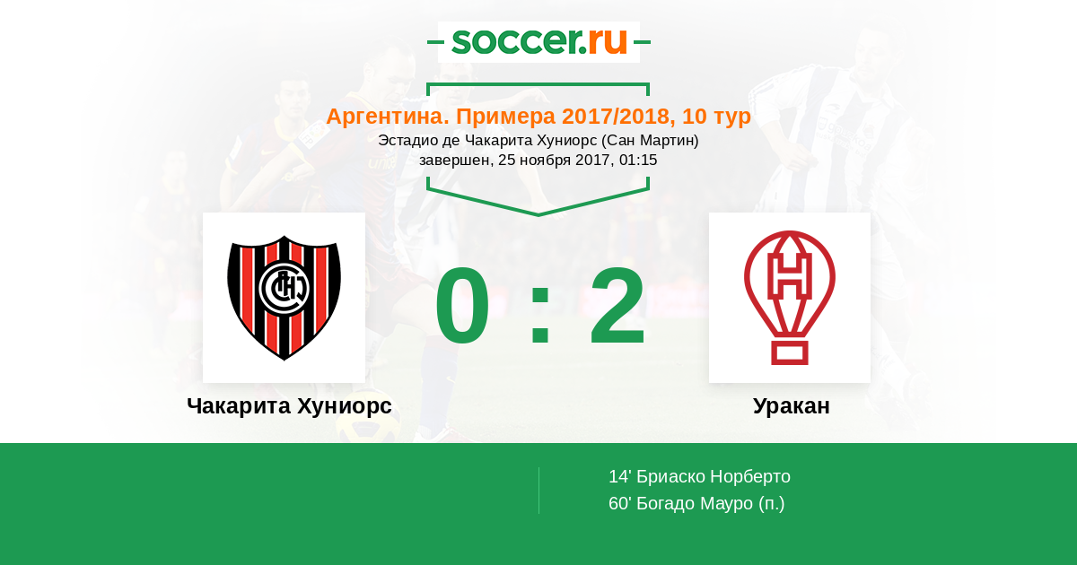 Протокол матча Чакарита Хуниорс против Уракан
