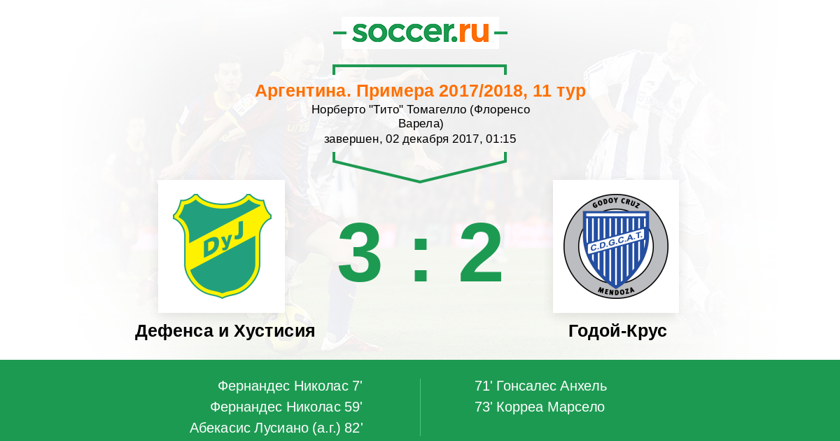 Протокол матча Дефенса и Хустисия против Годой-Крус