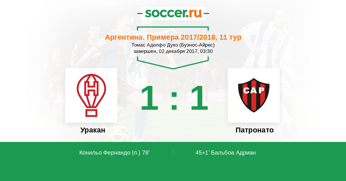 45+1' (0:1) Бальбоа Адриан (11) (Сандона Агустин (34))
