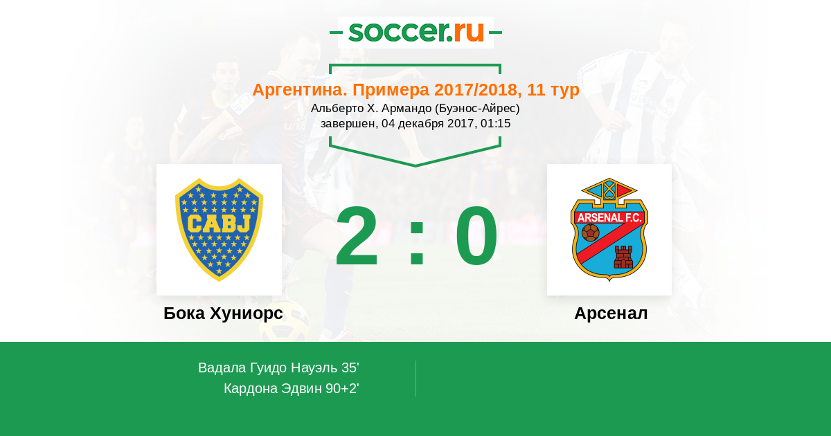 Протокол матча Бока Хуниорс против Арсенал