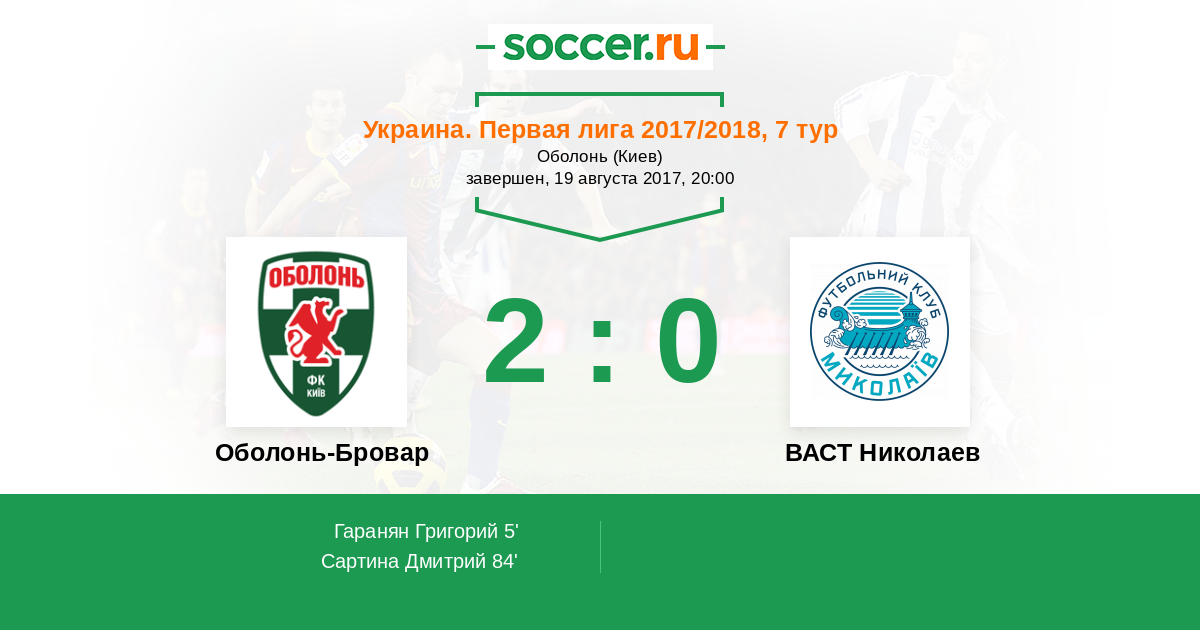 Протокол матча Оболонь-Бровар против ВАСТ Николаев