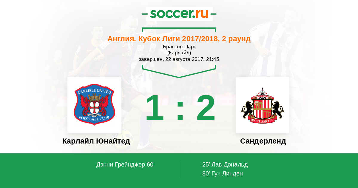 Протокол матча Карлайл Юнайтед против Сандерленд