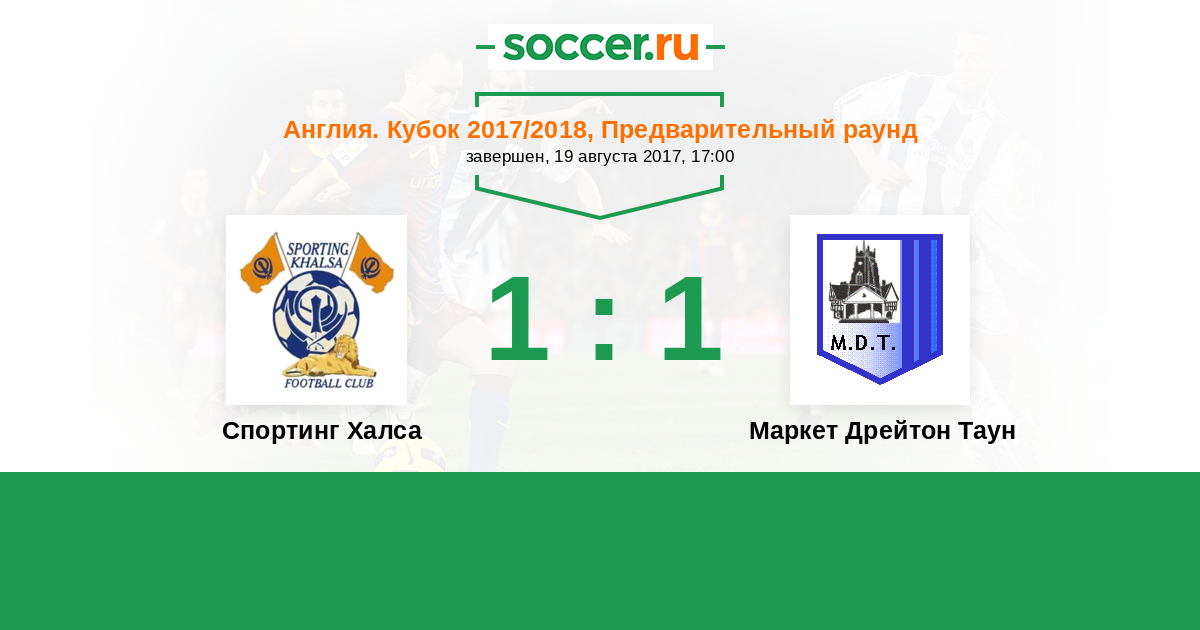 Англия. Кубок 22.08.2017 Маркет Дрейтон Таун Логотип футбольный клуб Маркет Дрейтон Таун 2:2 (4:1) Логотип футбольный клуб Спортинг Халса (Виленхолл) Спортинг Халса