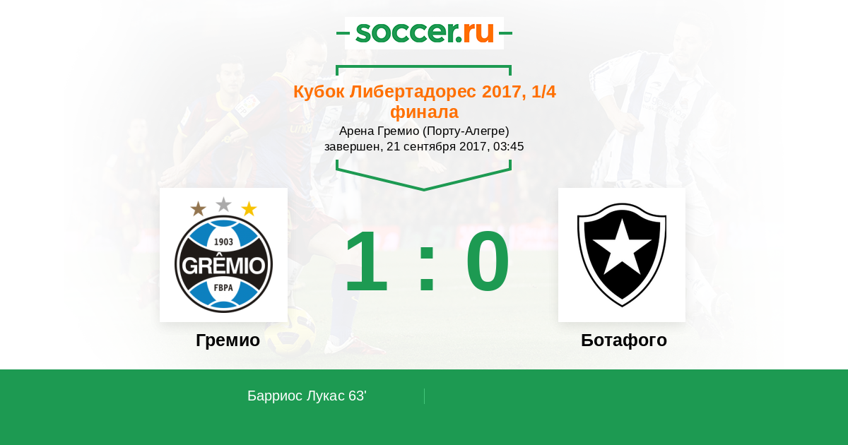 Протокол матча Гремио против Ботафого