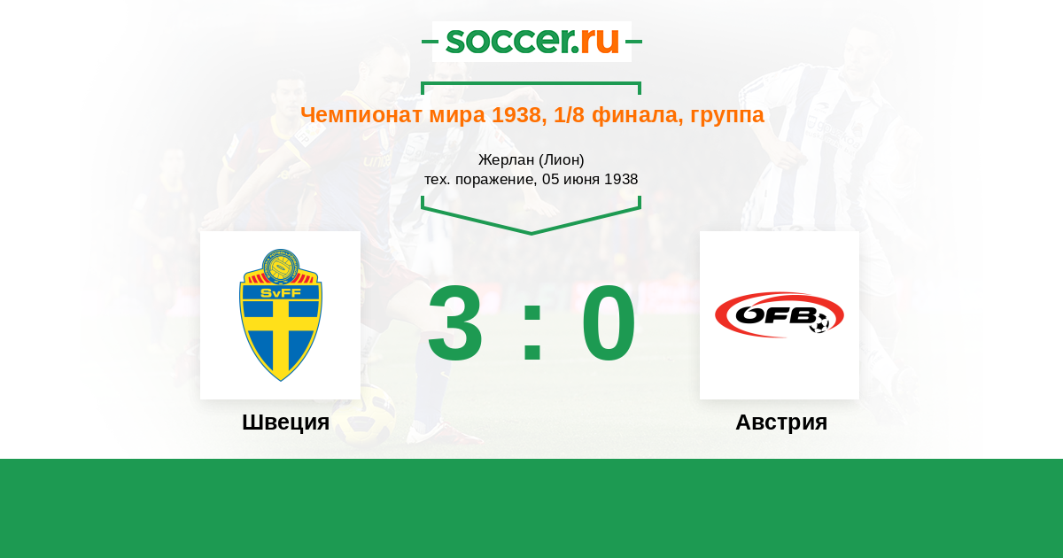 Чемпионат мира 06.06.1978 Австрия Логотип Австрия 1:0 Логотип Швеция Швеция