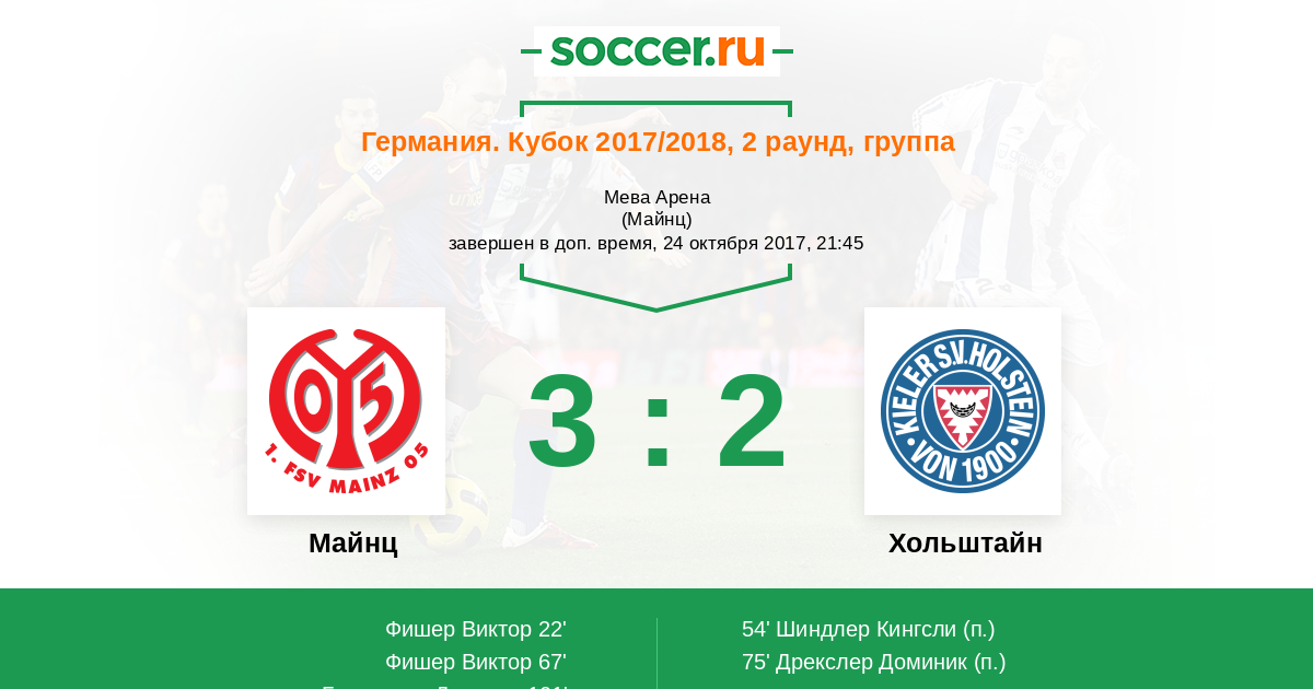 22' (1:0) Фишер Виктор (14) (Бросински Даниель (18))