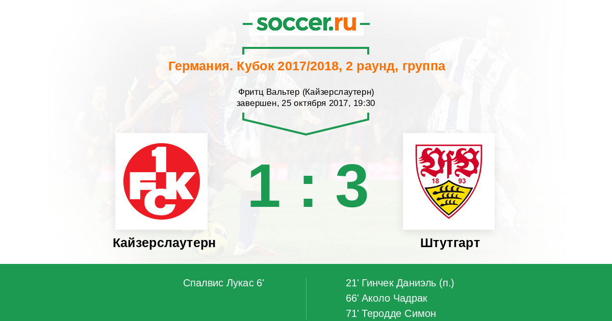 Протокол матча Кайзерслаутерн против Штутгарт
