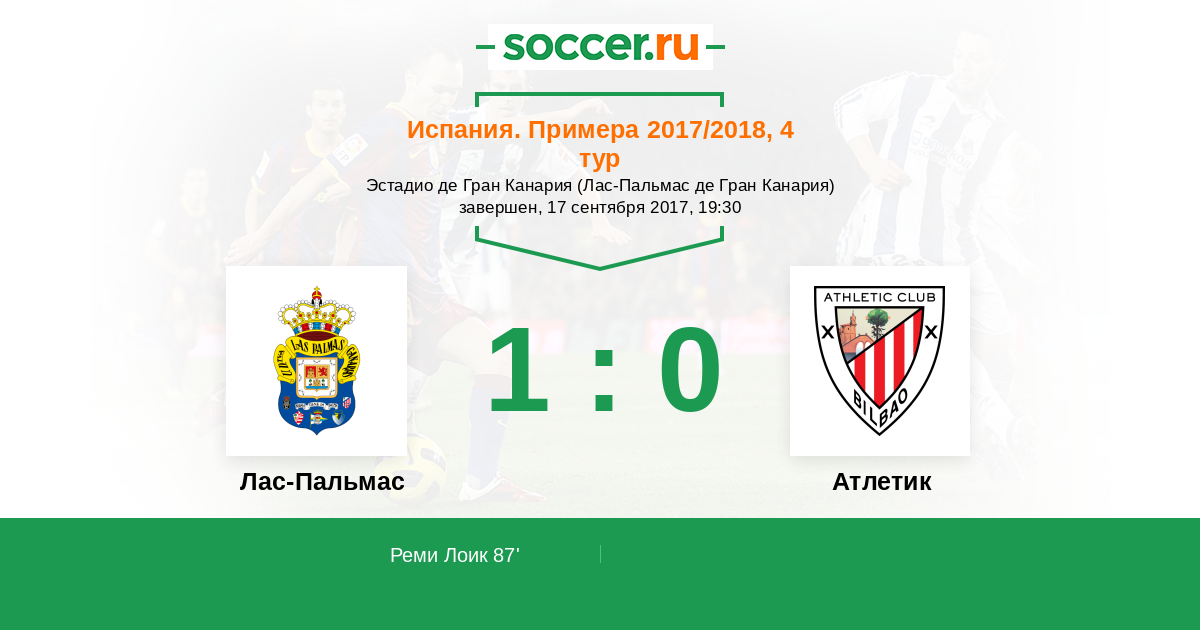 Протокол матча Лас-Пальмас против Атлетик