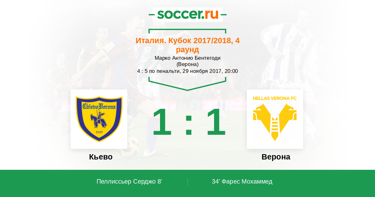 Протокол матча Кьево против Верона