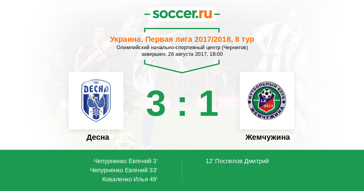 Протокол матча Десна против Жемчужина